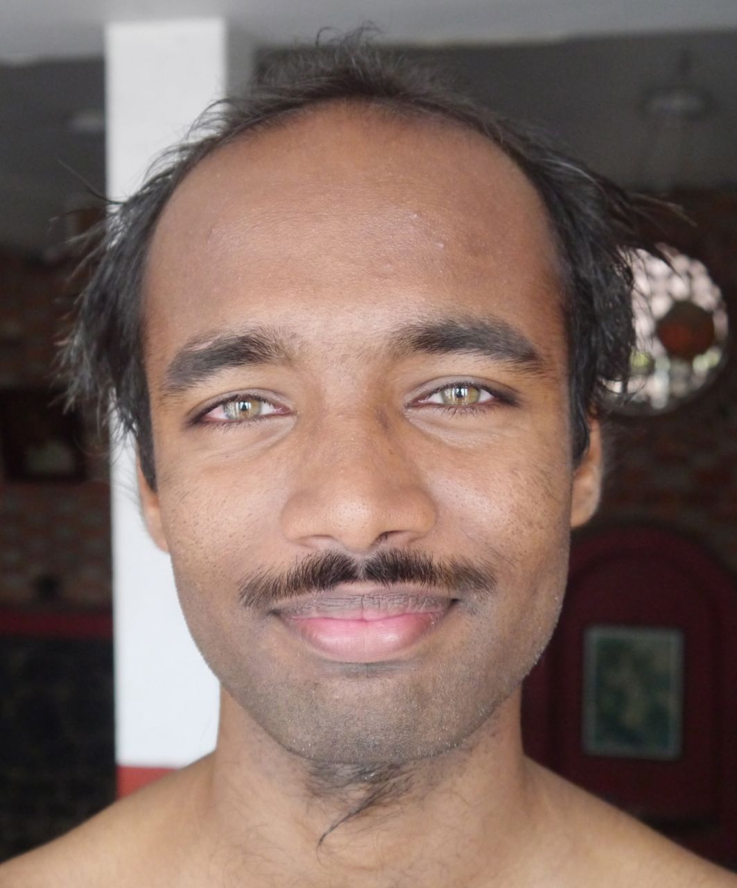 The vestiges of foreign genes will sometimes surprise you, as with the extremely light, hazel or blueish eyes on some Keralites, including Arjun, a 28-year old kalarippayattu student, who you will get to know better in a future post (pictured).
