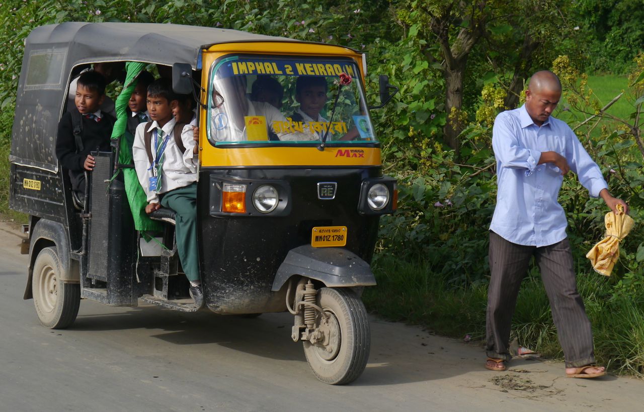 7. The auto-rickshaws. Unlike everywhere else in India I’ve been, in Manipur you cannot just hail an auto-rickshaw and get it to take you somewhere. People are sparse, the land is expansive, and there are frequent oil shortages due to the natural and man-made road closures. Hence each auto travels down a predetermined path, like a bus. You can hop on and off, sometimes sharing the auto, which here is the size of a small pick-up truck, with 10 others, including two or three squeezed next to the driver. Once we had to take three separate autos to make it back to the hotel from a far-off Thang-Ta centre.