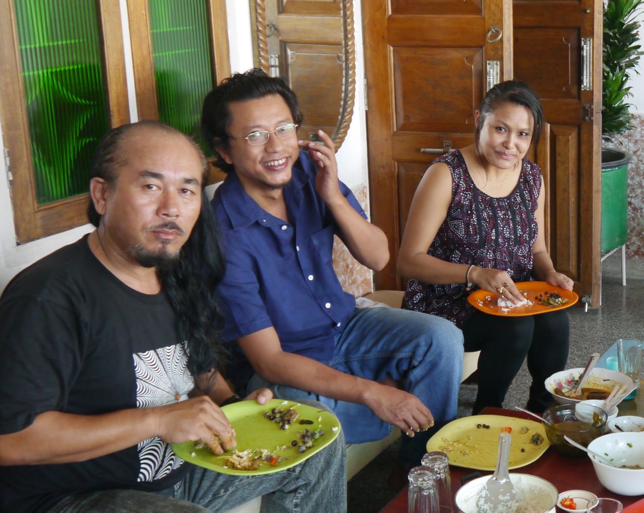 Over seven splendid days there–longer than we’ve spent in any other city on this trip–Roshan, his wife Pushpa, their friend Naobi, aka “Bro” (all three pictured, Bro on left) and numerous Thang-Ta gurus play host to us. Manipur delights and surprises us in so many ways, and will probably demand a not insignificant part of my book. For now, however, as I am time- and Wifi-starved on the road from Nepal – Tibet – Chengdu, I will simply share ten fascinating things about the wonderful land of Manipur.