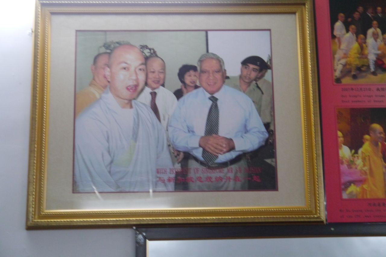 It turns out that there are Singaporean connections all around us. There are photos of Lee Kuan Yew’s visit to the school. There are medals and ceremonial plaques from Shifu Jiao’s visit to Singapore. And right in front of the school’s Bodhidharma statue, SR Nathan wrote his own name in Chinese characters. I try to join the party by highlighting my own tenuous link to Mr Nathan, who was the guest-of-honour at the launch of my first book, Floating on a Malayan Breeze. But Shifu Jiao ignores my shameless attempt at self-promotion cum presidential camaraderie; he is more interested in telling me about Shaolin.